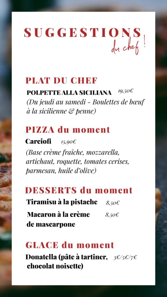 Allo Angelo a installé la tradition italienne au coeur de Sannois depuis plus de 30 ans. Vous pourrez y découvrir l’ensemble de nos spécialités maison préparées par nos soins (Pizzas, pâtes, plats typiques italiens, desserts maison..) en déjeunant et en dînant au restaurant ou en venant directement retirer votre commande sur place. Nos pizzas sont garnies de produits de qualité, frais et authentiques importés du terroir italien. Nos légumes arrivent directement de Rungis plusieurs fois par semaine. Vous dégusterez une pizza traditionnelle tout en vous laissant le choix de l’adapter selon vos goûts et vos envies. Chez Angelo se joue une cuisine généreuse et authentique, gorgée de soleil dans la tradition italienne.